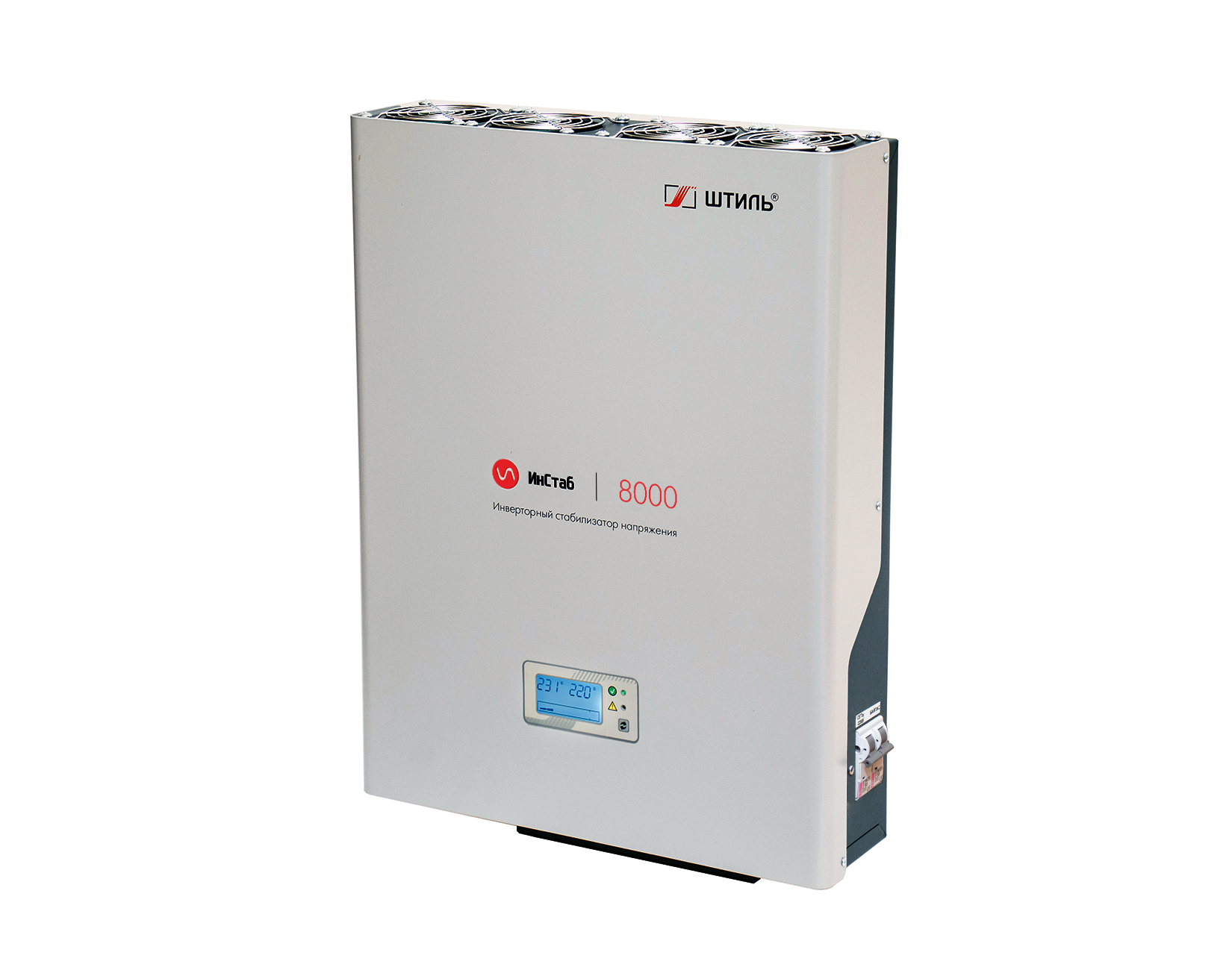 У инверторного стабилизатора напряжения IS8000 «Штиль» выходная мощность составляет 8000 ВА / 72000 Вт.